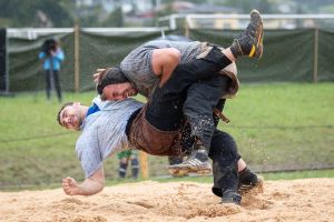 Kaltbrunn, 1.8.21, Schwingen - St.Galler Kantonal.Rhyner Michael (O, Flawil), Hinrichs Silvio (Stein)
