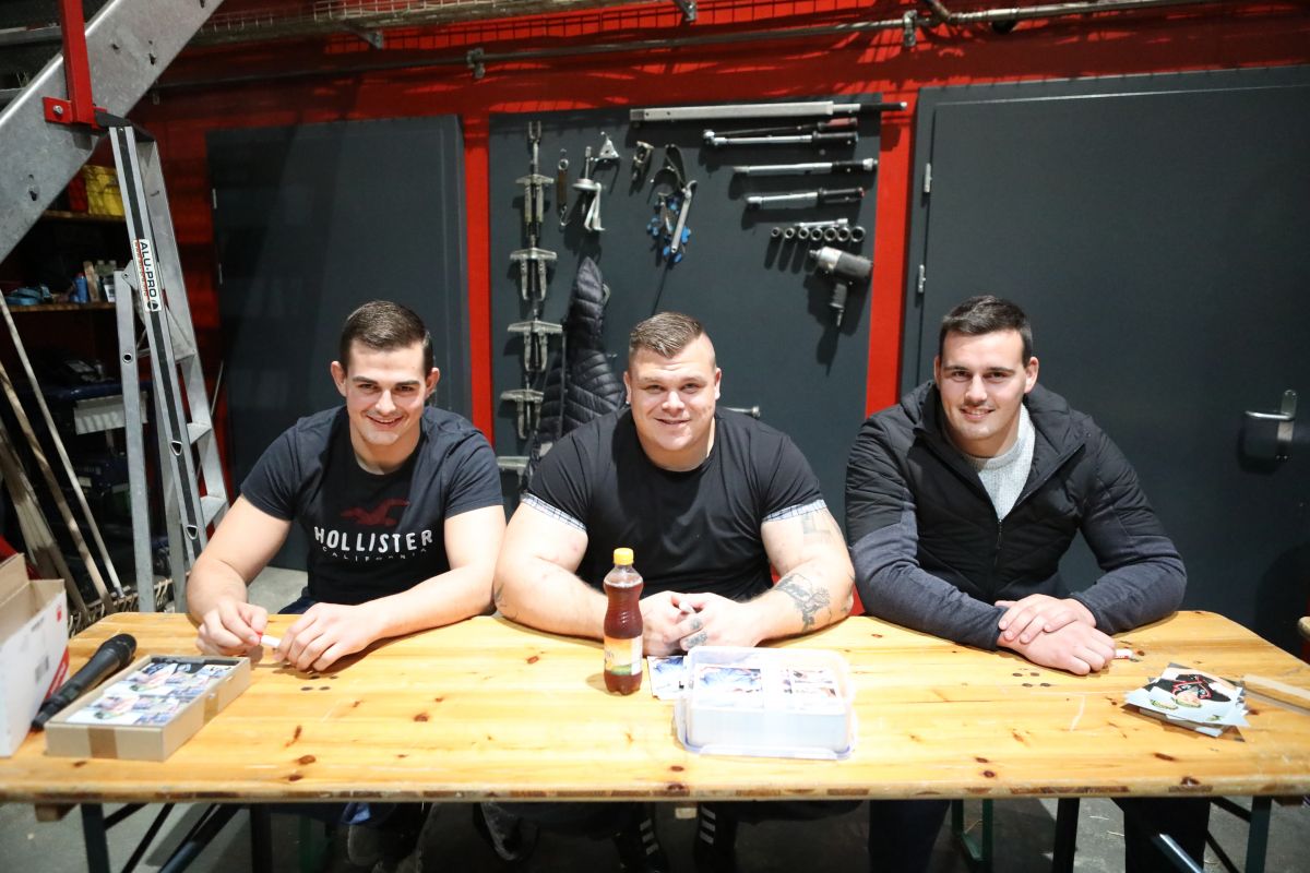 Autogrammstunde der Eidgenossen von Zug: Andreas Döbeli, Patrick Räbmatter und Joel Strebel