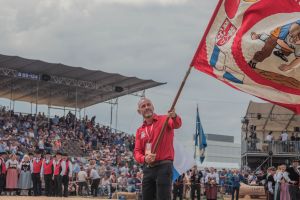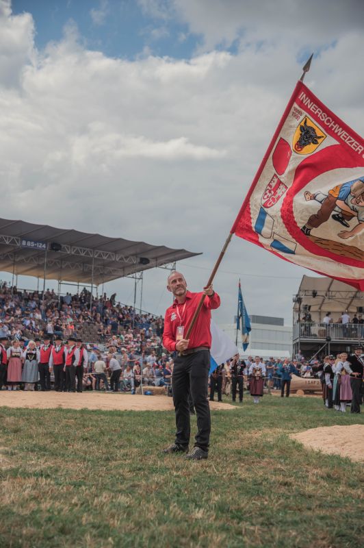 OKP Markus Grüter mit der ISV-Fahne, Foto Michèle Seeholzer