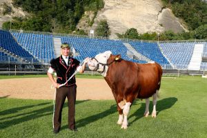 • 03.08.2024, Emmentalisches Schwingfest Burgdorf, Schlussgang Sieger Moser Michael mit Muni Adrio von der Metzg