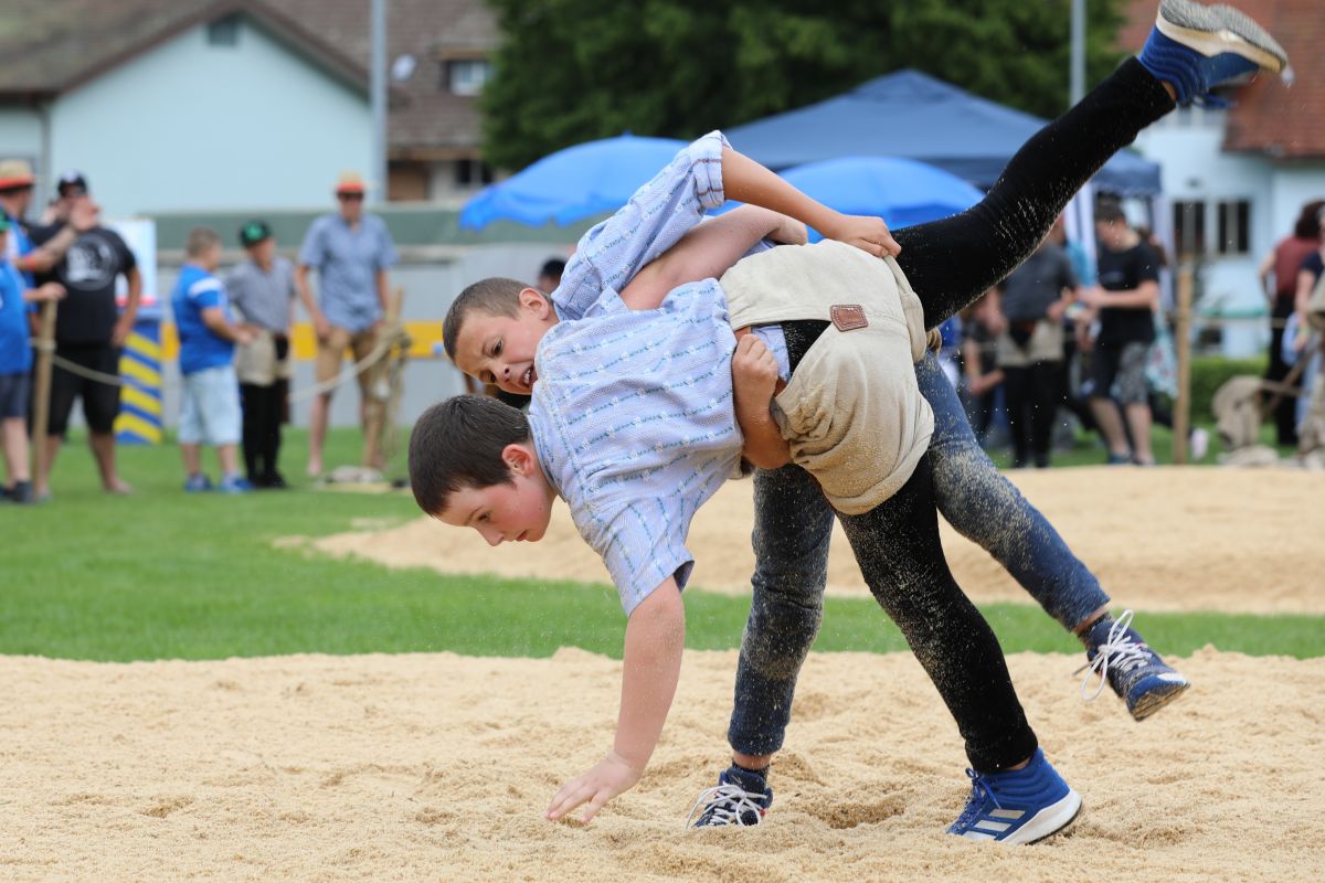Mit Russo Giulio vom Schwingklub Aarau und dem Zofinger Stefen Leon griffen auch im Fricktal zwei bekannte Gesichter im Schlussgang zusammen.