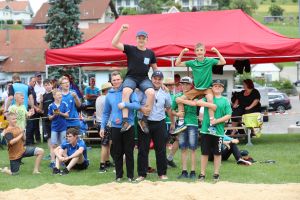 Beide Schlussgangteilnehmer konnten vier Gänge für sich entscheiden und einen Gang endete für sie gestellt. Nach zehn Minuten konnten die beiden kein Resultat erreichen. So konnten Zubler Tim vom Schwingklub Lenzburg und mit Freude der Gastgeber, der Fricktaler Schreiber Tim den Festsieg erben.