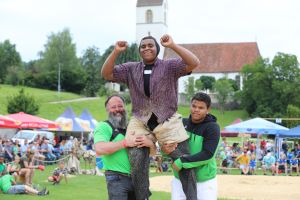 Berchtold Matti vom Schwingklub Zurzach griff mit dem Solothurner Hiestand Yanis zusammen. Mit fünf gewonnen Gängen startet Bertold Matti in den Schlussgang. Hiestand Yanis konnte vier Gänge für sich entscheiden und einen musst er ohne Resultat beenden. Der Wettinger Bertold Matthi konnten den Schlussgang, nach nicht ganz zwei Minuten am Boden mit überdrehen für sich entscheiden und sicherte sich so den Festsieg