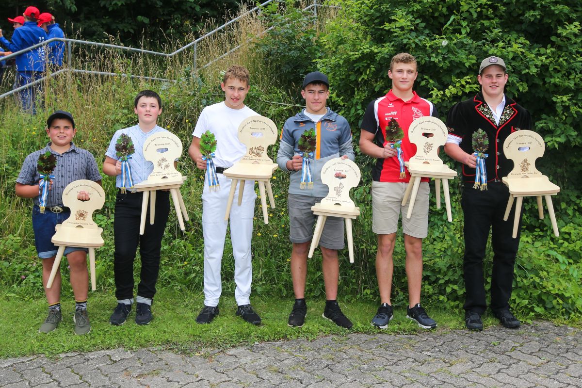 Unter besonderer Beobachtung standen schliesslich auch in Trimmis die ältesten beiden Kategorien – handelt es sich dabei doch um die Jahrgänge 2004 bis 2006, welche am Eidgenössischen Nachwuchsschwingertag von Ende August in Schwarzenburg startberechtigt sind. Mit guten Resultaten können sich die Nachwuchsschwinger hier weiterhin für eine Qualifikation für den Grossanlass aufdrängen. Im Jahrgang 2006 gewinnt der Appenzeller Mathias Jäger mit lauter Siegen das Fest, Niklas Lötscher (Untervaz) auf Rang 2 und Schlussgangteilnehmer Niculin Engi (Rothenbrunnen) auf Rang 3 folgen dicht dahinter. Das gute Abschneiden der Bündner wird schliesslich durch Linard Gantenbein abgerundet, der das Fest in der ältesten Kategorie (2004/2005) nach verlorenem Schlussgang gegen den überlegenen Sieger Kevin von Wyl (Sachseln) auf Rang 2 beendet. Insgesamt gewinnt der gastgebende Kantonalverband 23 Zweige.