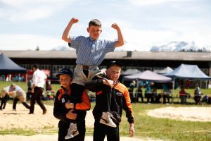 Der Sieg ging an den Oberländer Adrian Schärz vom Schwinklub Aeschi. Im Schlussgang besiegte er den Emmentaler Tim Fankhauser mit Übersprung.
