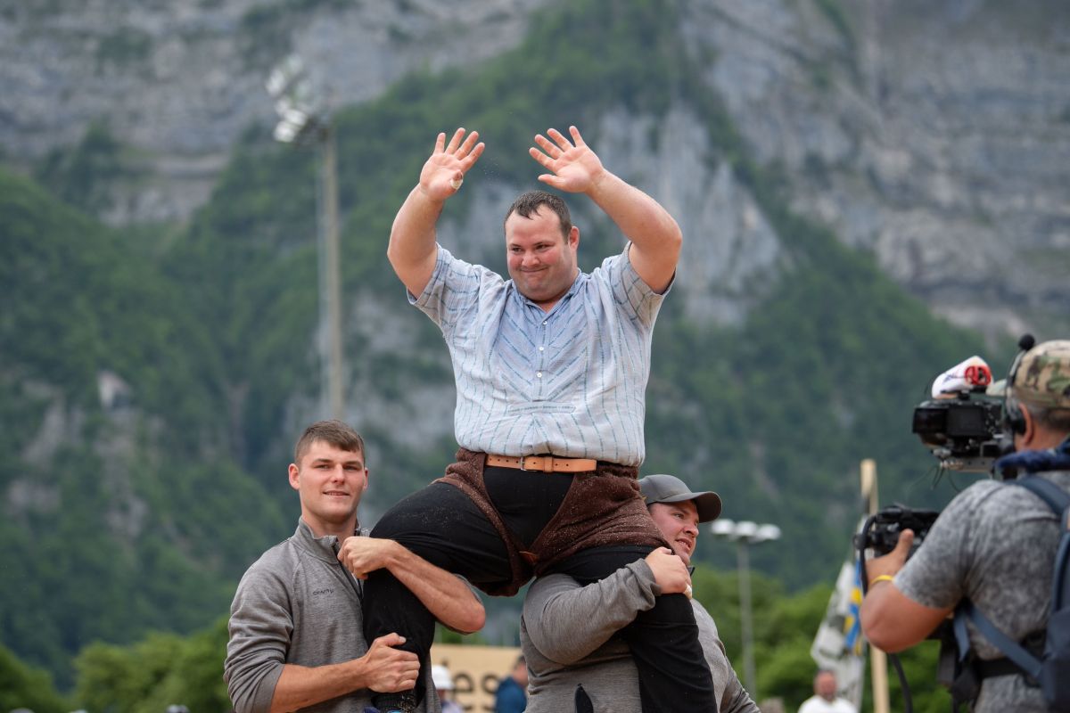 Domenic Schneider gewann am Morgen alle drei Duelle und hatte bereits einen grossen Vorsprung herausgeschwungen. Im vierten Gang stellte er mit Werner Schlegel, womit der St. Galler mit dem zweiten Gestellten aus der Entscheidung fiel. Schlegel stellte zu Beginn schon mit Armon Orlik. Auch Orlik kassierte im vierten Gang gegen Martin Roth den zweiten Gestellten, womit Schlegel und Orlik früh aus dem Rennen fielen, derweil Schneider nach vier Gängen weiterhin die Ranglistenspitze zierte. Um den Schlussgangeinzug bezwang der Eidgenosse den Glarner Patrik Feldmann rasch.