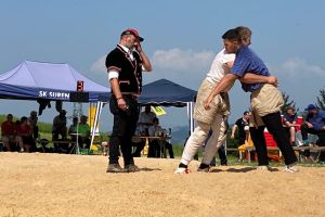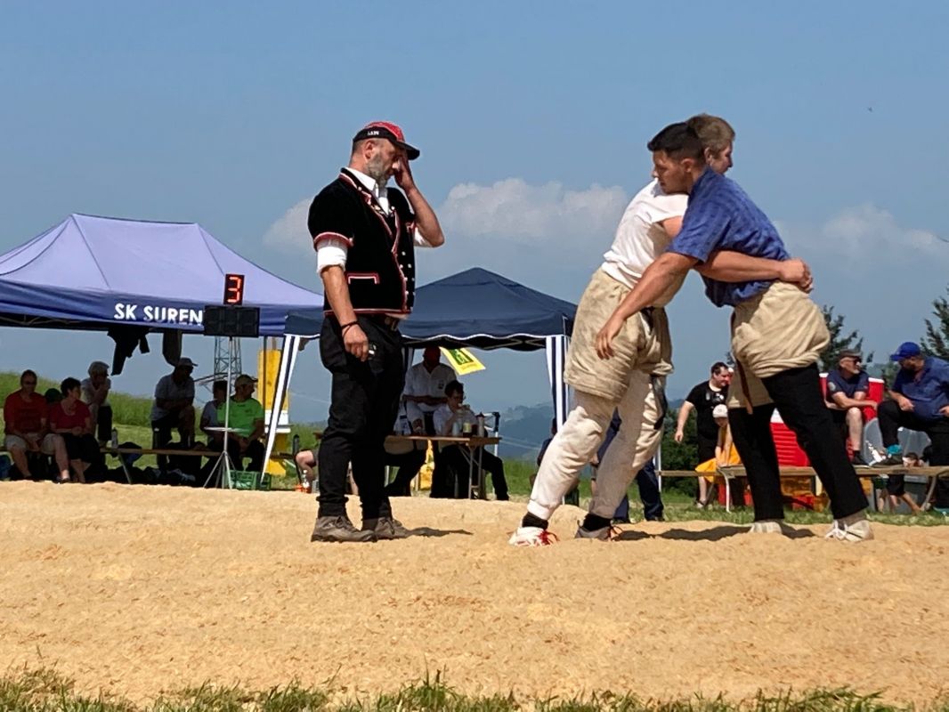 Die Hitze zollte bei den beiden Schlussgangteilnehmer ihren Tribut und so endete der Gang nach 12 Minuten zwischen Schwyzer Samuel, Kottwil und Scherrer Fabian, Uffikon gestellt.