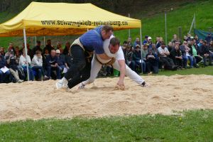 Bei wechselhafter Witterung konnte das Bad- Schwinget Wolhuen durchgeführt werden. Die Schwinger präsentierten spannende Zweikämpfe.