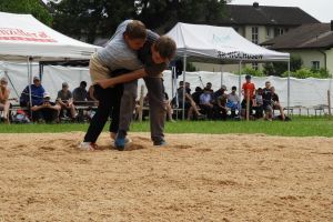 Den Schlussgang der zweitältesten Athleten der Kategorie B bestritten die beiden Klubkameraden Zumstein Roman und Wolf Stefan aus Giswil den Schlussgang, wobei Zumstein mit einem Plattwurf als Sieger hervorging.