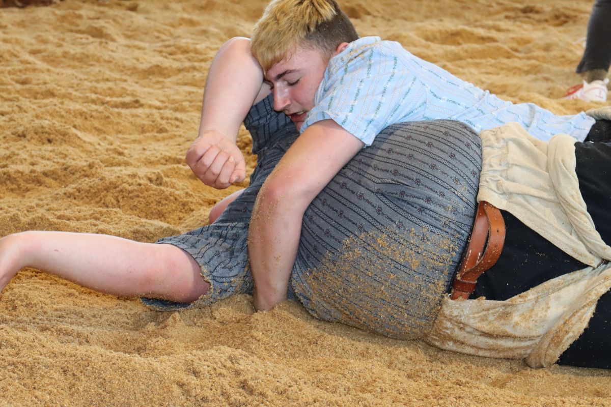 Für den Schlussgang qualifizierte sich souverän der Zuger-Topfavorit Noe van Messel und der Entlebucher Marc Lustenberger. Bereits im ersten Gang konnte van Messel seinen Schlussgangwidersacher bezwingen und auch im Schlussgang behielt der Zuger die Oberhand. Bereits nach 40 Sekunden setzte van Messel zu einem linken Fussstich an und vervollständigte am Boden mit sauberem Kniekehlengriff eindrucksvoll.