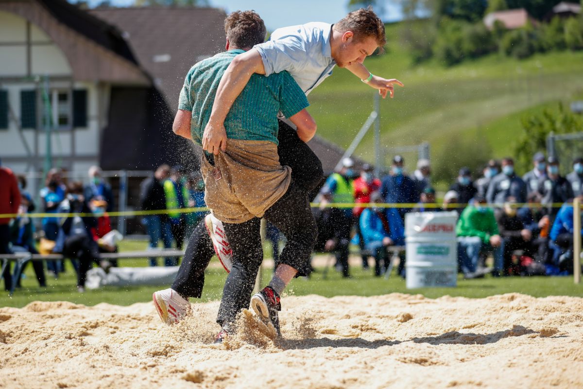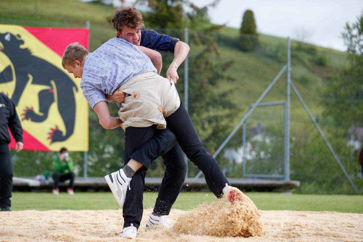 Nach langem Hin und Her war es am Pfingstsamstag, 22. Mai endlich so weit: In Ursenbach wurde geschwungen – trotz anhaltender Corona-Pandemie. Zwar konnte das Oberaargauische Schwingfest nicht wie geplant durchgeführt werden, doch auch ohne Kranzfest wurde in der 900 Seelen-Gemeinde an diesem Tag Schwingsport auf hohem Niveau geboten. So fand auf dem Sportplatz Ruggli» das Oberaargauische U20 Schwingfest für junge Aktive im Alter von 16 bis 20 Jahren statt. Rund 100 Athleten traten zu diesem Anlass an, darunter zahlreiche, talentierte Schwinger, die bereits in zwei, drei Jahren in der Szene ein Begriff sein werden.