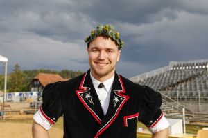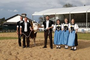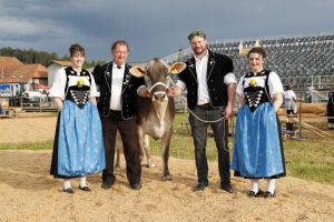 12.05.2024, Mittelländisches Schwingfest Riggisberg, Sieger Staudenmann Fabian, mit Muni Gantrisch