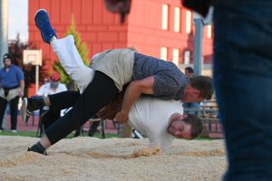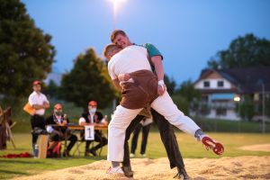 Bei sonniger Abendstimmung gewann Joel Wicki das Oberseetaler Rangschwinget in Ballwil. Er hat sich gegen 44 Schwinger durchgesetzt. Den Schlussgang gewann er nach 2 Minuten mit Müngermurks gegen René Suppiger