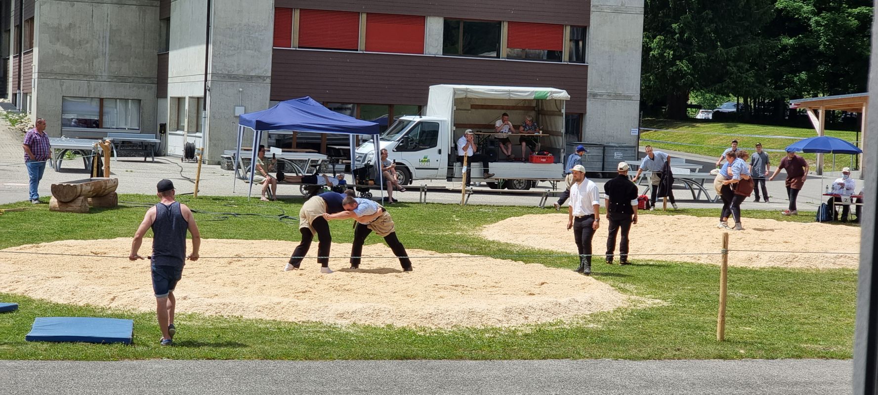 Par un temps chaud et ensoleillé, un total de 26 lutteurs U20 ont participé a la fête régional de lutte à Schwarzsee. La fête a été marqué par des manches intensément disputées. Collaud Romain du club de lutte d'Estavayer-le-Lac et le local Baeriswyl Christoph de Plaffeien sont arrivés en tête. Après 5 passe, ils étaient tous deux en tête de la liste de classement. Les deux jeunes lutteurs talentueux ont donc uni leurs forces lors de la passe finale. La passe final a été très passif des deux côtés et s'est terminé nul après 10 minutes. Romain Collaud ayant abordé le dernier tour avec une avance, ce nul a suffi pour la victoire.