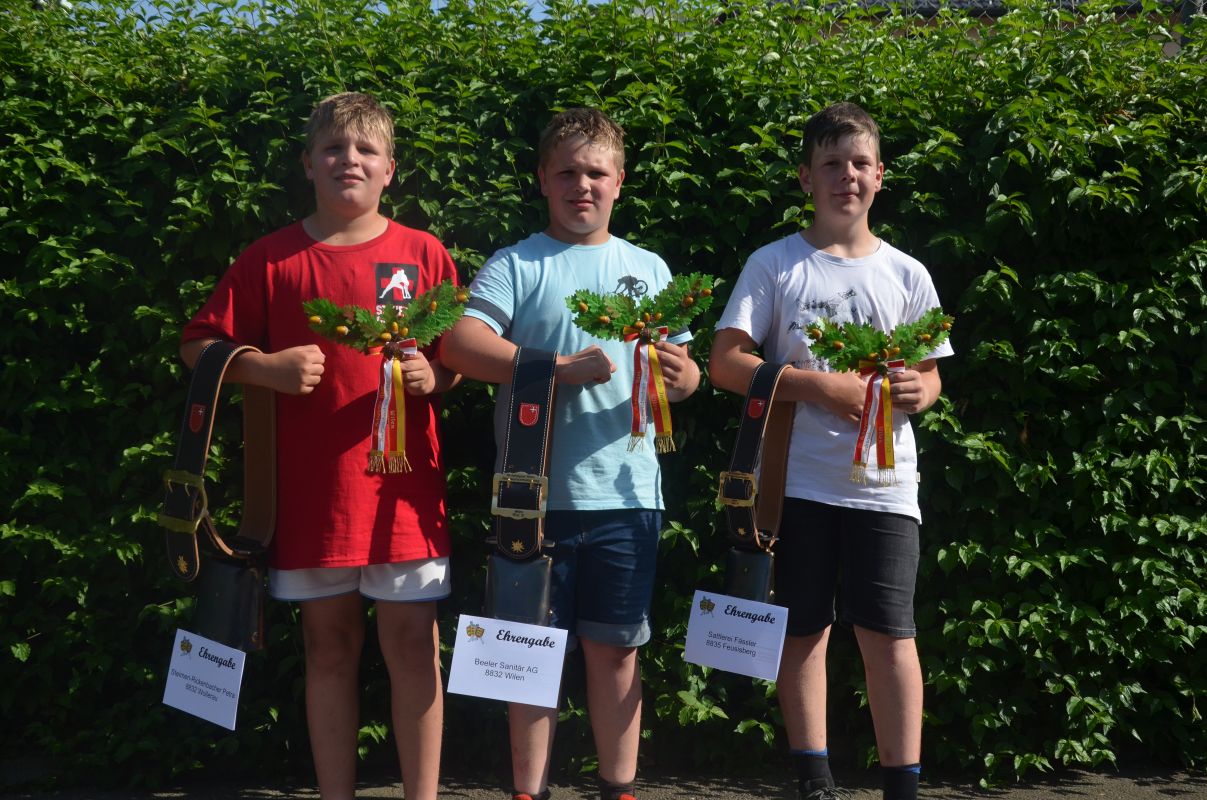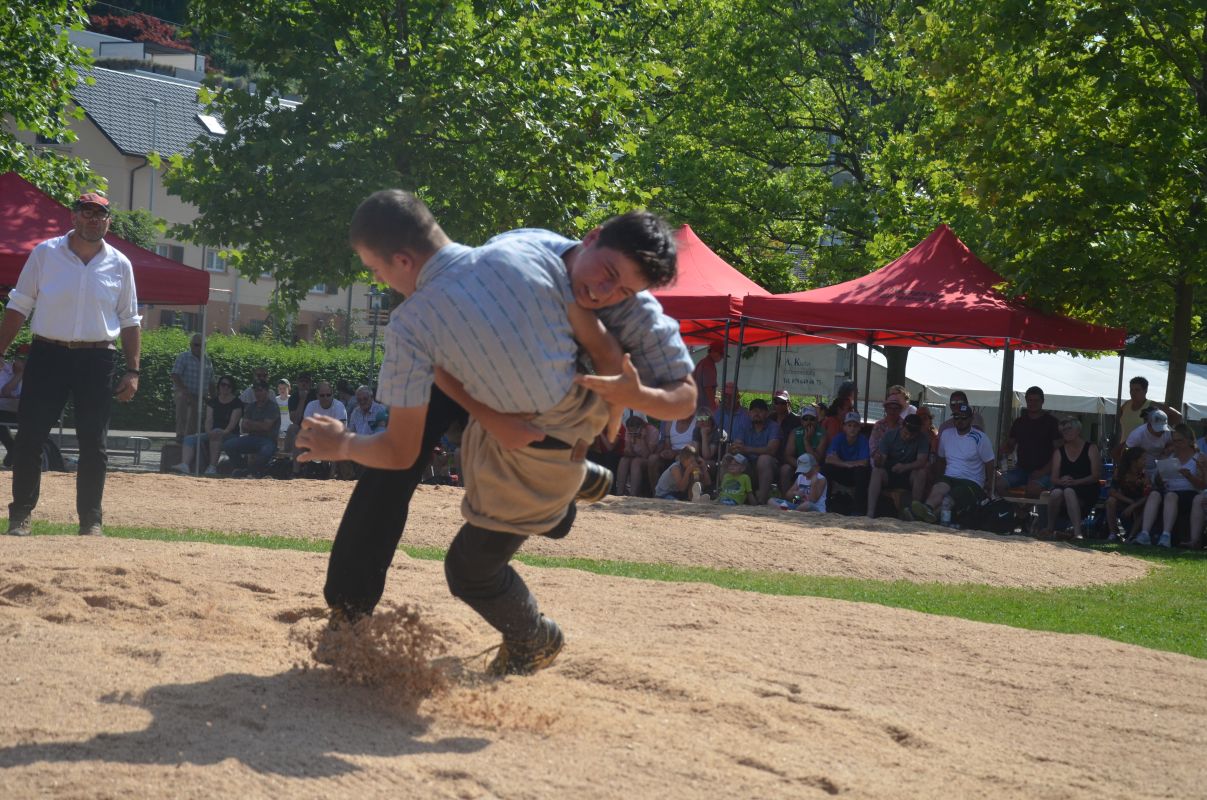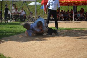 Hitzebedingt blieb der Zuschaueraufmarsch geringer als erwartet. Und auch die Schwingfeststimmung war weniger ausgelassen als auch schon. In der Regel wurde sofort ein schattiges Plätzchen aufgesucht und nur noch verlassen, wenn unbedingt nötig. Wenig erfreulich war die grosse Zahl der Abmeldungen. So verzichteten über 40 ursprünglich angemeldete Schwinger auf einen Start. Die Einteilung unter der Leitung von Obmann Armin auf der Maur konnte mit nur noch 169 Jungschwingern den Wettkampf in Angriff nehmen.
