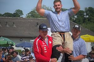 En passe finale nous retrouvons le fédéral Benjamin Gapany et le lutteur local Romain Collaud. Après un peu plus de 1 min de combat, Gapany surprend son adversaire avec un saut croisé