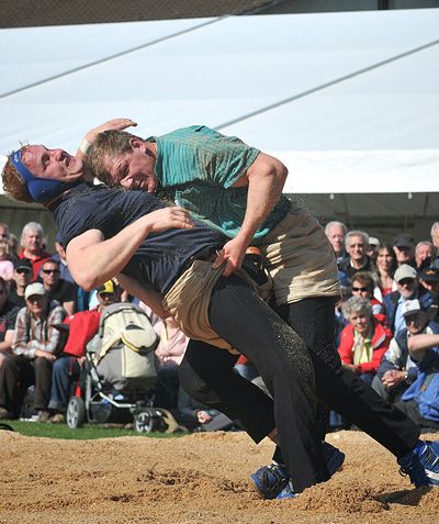 Bruno Gisler, Rumisberg SO, ist Sieger vom 89. Baselstädtischen Schwingertag. Im Schlussgang gewinnt er nach 4 Minuten mit Hüfter und Nachdrücken gegen Mario Thürig, Möriken AG.