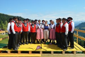 die Sennen mit ihren Sennenmeitli am Alpaufzug