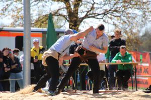 Bereits beim Apell der Schwinger um 10.00 Uhr schien sie Sonne. Zur Freude aller Schwingfans durfte man sich auf viel gute und spannende Schwingarbeit freuen. Nebst den beiden Zugpferden aus dem NOS Verband Samuel Giger und Damian Ott, waren auch die Innerschweizer Gäste Schwinger vom Schwingclub Rottal und Umgebung am Start. Als einziger der drei Eidgenossen konnte Samuel Giger seinen Gang gegen den Innerschweizer Teilverbandskranzer Bürli Roger gewinnen. Burkhalter Stefan unterlag Ott Damian im Anschwingen. Der Innerschweizer Eidgenosse Stöckli Stefan stellte gegen den Schaffhauser Teilverbandskranzer Vollenweider Jeremy.