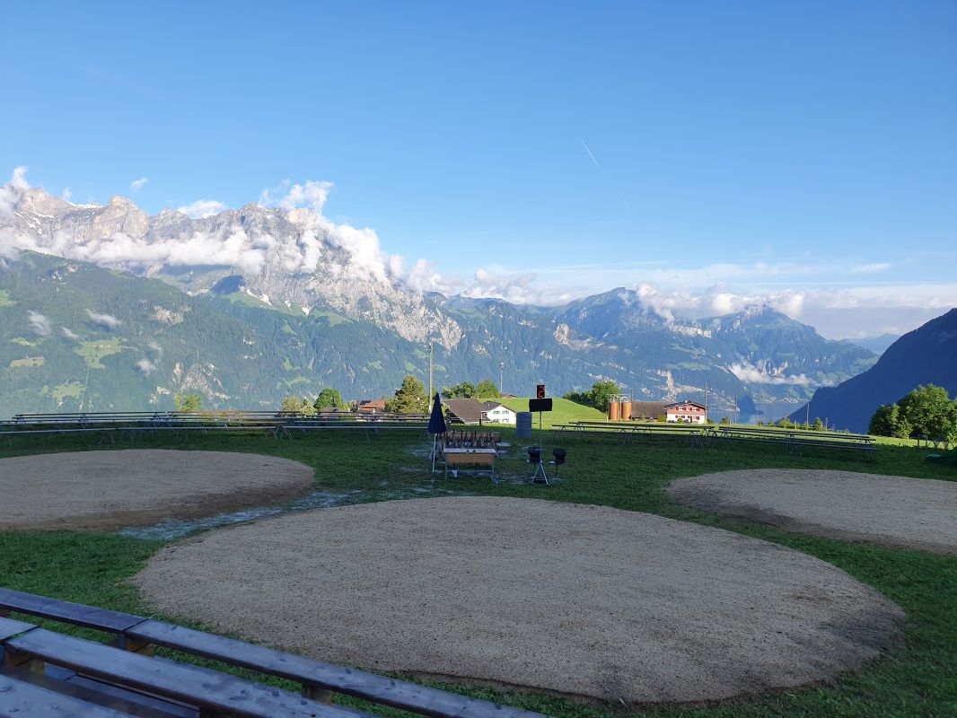 42. Haldiberg-Schwinget Haldi ob Schattdorf, 06.06.2022 Nombre de lutteurs80 retour à l‘aperçu Festplatz mit der wunderschönen Bergkulisse © Michael Arnold