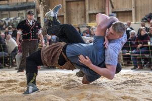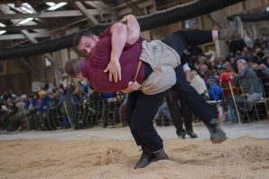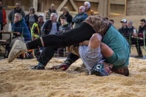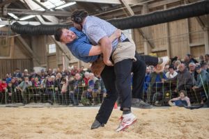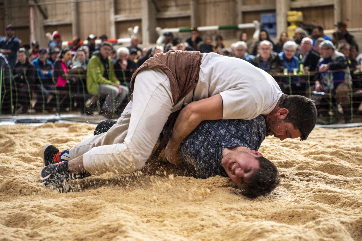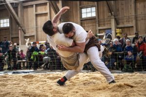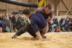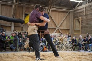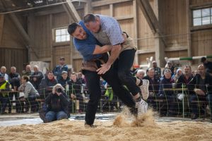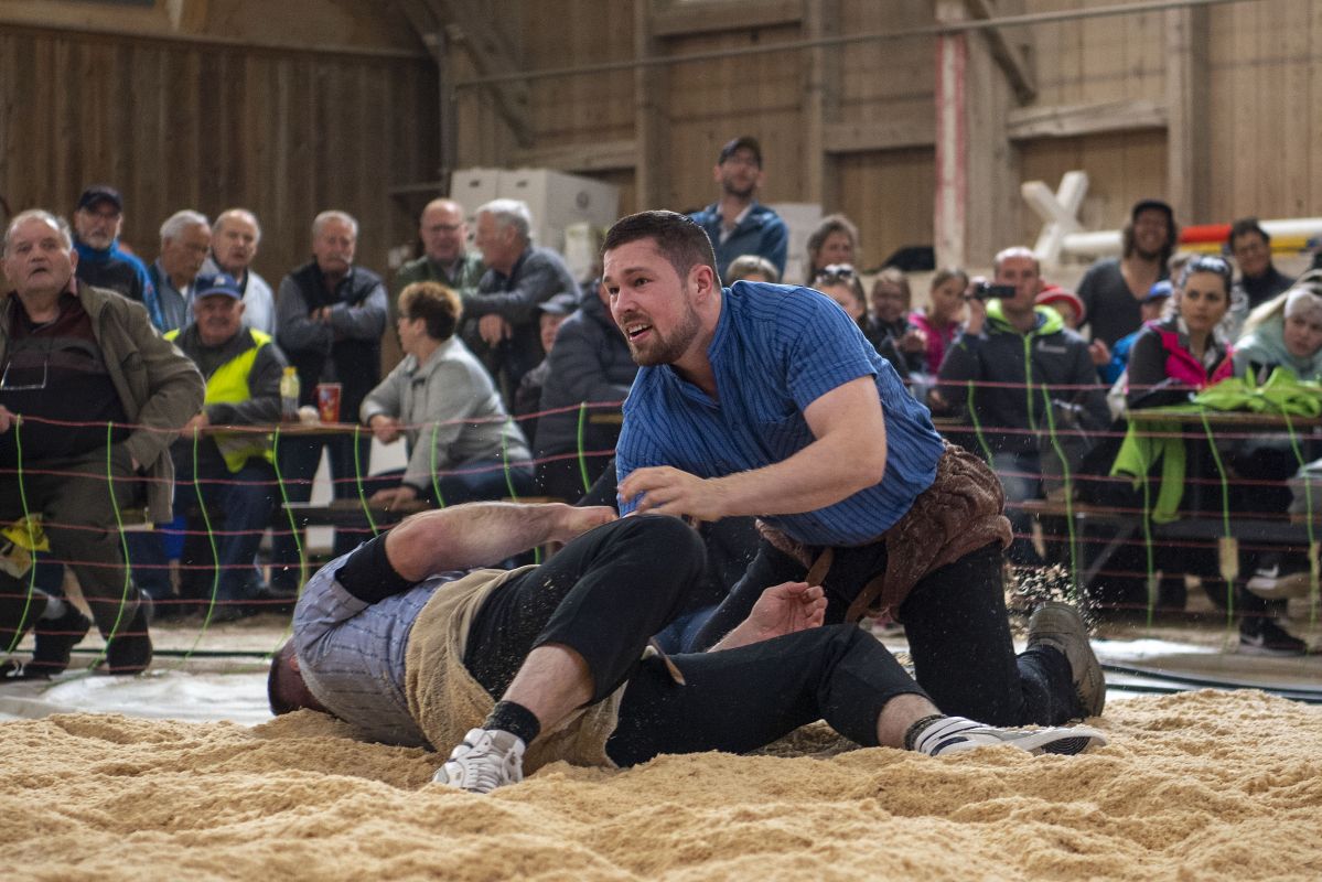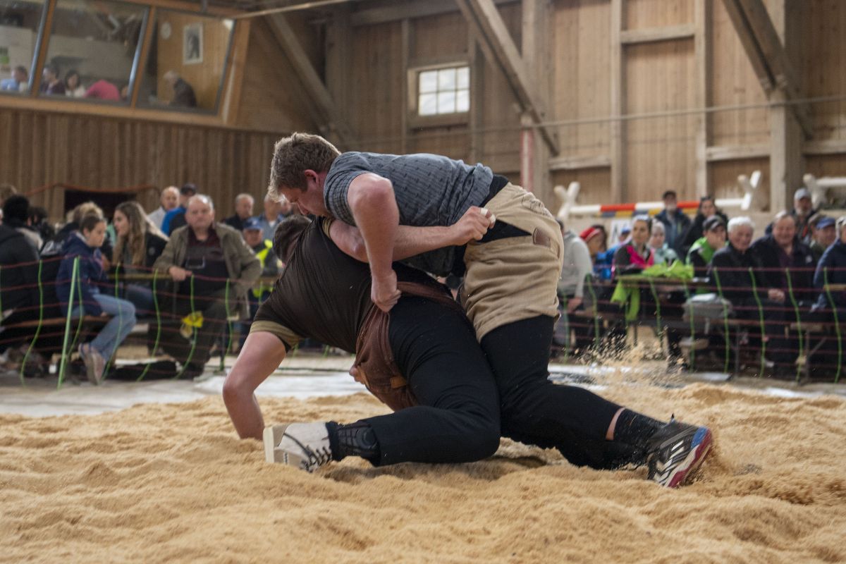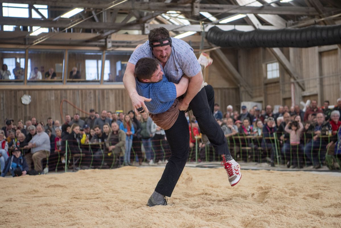 Heimenschwand, 13. März 2022, Schwingen, 22. Hallenschwinget Oberdiessbach 2022. Michael Scheuner (H, Bleiken) gegen Steven Duplan (V, Ollon) (Rolf Eicher/Eicherdigital)