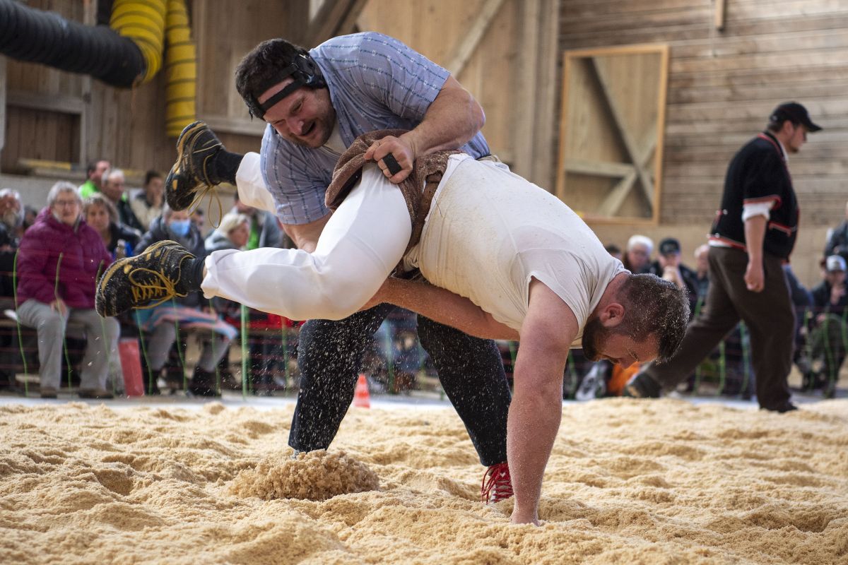Heimenschwand, 13. März 2022, Schwingen, 22. Hallenschwinget Oberdiessbach 2022. Mickaël Matthhey (V, Gingins) gegen Michael Ledermann (H, Mamishaus) (Rolf Eicher/Eicherdigital)