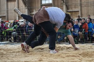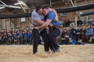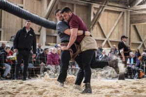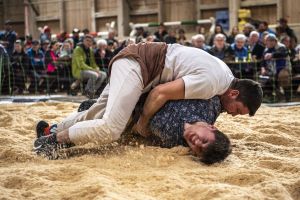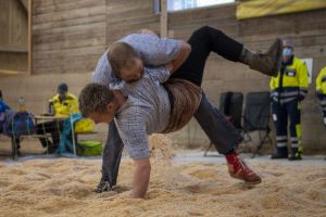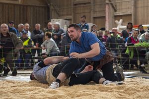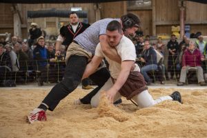 Heimenschwand, 13. März 2022, Schwingen, 22. Hallenschwinget Oberdiessbach 2022. Michael Scheuner (U, Bleiken) gegen Steven Duplan (O, Ollon) (Rolf Eicher/Eicherdigital)