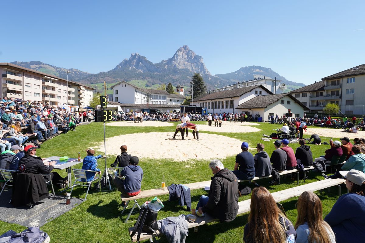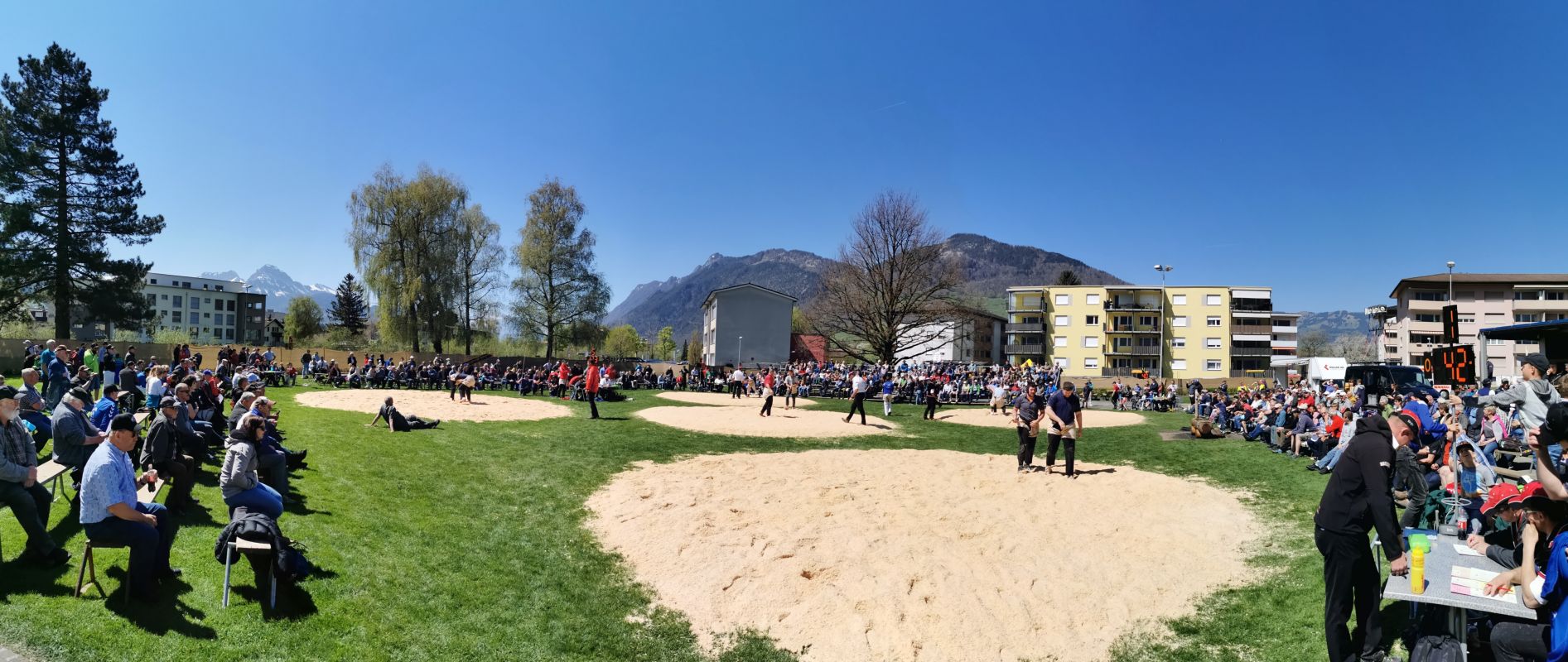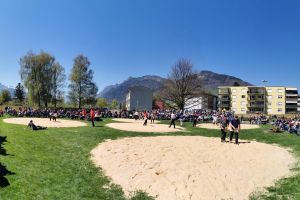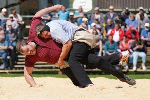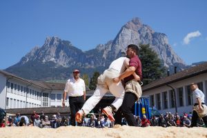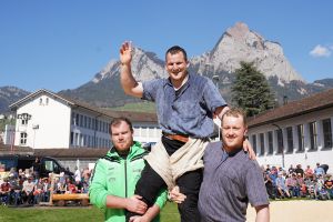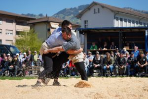 Fankhauser Reto bezwingt Kennel Stefan nach 2 Minuten und 10 Sekunden mit "übers Knie leeren" und Nachdrücken am Boden.