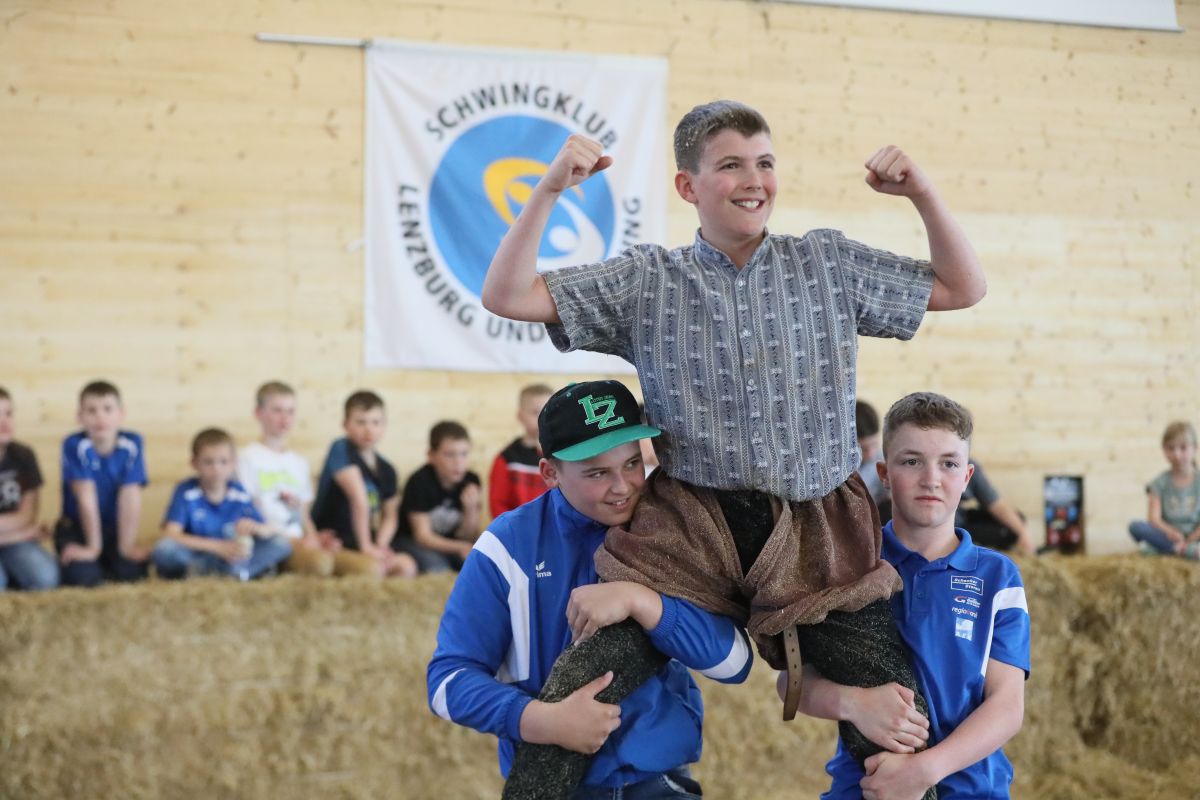 Um 08.15 Uhr begrüsste der TL Jungschwinger Markus Meier die 256 Jungschwinger beim Morgenappell. Der Schwingklub Lenzburg als Organisator war bestens vorbereitet und leistete hervorragende Arbeit. Voll motiviert und ehrgeizig gingen die Buben in 5 Jahrgangskategorien zur Sache. Die Jungschwinger waren während des Tages so lebhaft wie fünf Geisslein, welche als Siegerpreis für die Jahrgangssieger im Aussengehege warteten. Nach der Mittagspause steigerte sich die Spannung wer wohl Richtung Zweiggewinn oder Schlussgang steuerte. 700 Zuschauer verfolgten die attraktiven Wettkämpfe. Um 16.30 Uhr starteten die Schlussgänge und die glücklichen Kategoriensieger nahmen im Anschluss voller Stolz die Lebendpreise in Empfang.