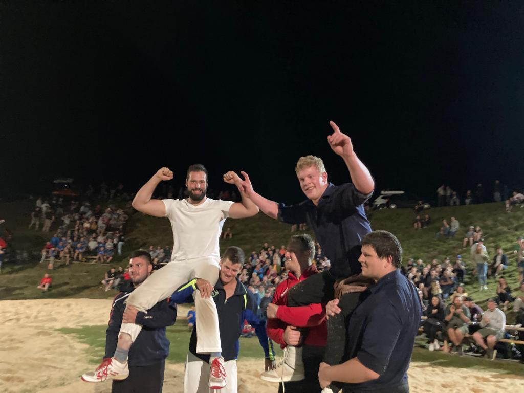 Bei angenehmer Witterung verfolgten 650 Zuschauer spanndende Gänge der 59 angetretenen Schwinger. Im Schlussgang bezwingt Schöpfer Ronny in der 5. Minuten mittels Hüfter Schenk Thomas. Schaller Noah konnte durch einen Plattwurf im 6. Gang zum Schlussgangsieger aufschliessen und beendet das Abendschwinget im Rang 1b.