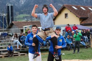 Bei den ältesten Nachwuchsschwingern schliesslich (Jahrgänge 2006/07), die sich an der Schwelle zu den Aktiven befinden, reichte dem Einheimischen Niklas Lötscher aufgrund des Punktevorsprungs im Schlussgang gegen den Luzerner Andrin Stampfli ein «Gestellter» zum umjubelten Heimsieg.