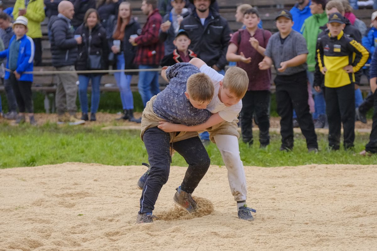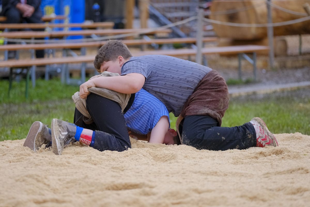 • Auch die Jungschwinger schwingen während des Schwingfestes 6 Gänge und unterstützen dazwischen ihre Klubkollegen
