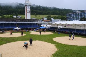 Die Vorbereitungen waren nicht ganz einfach – in der Woche des Aufbaus gab es Dauerregen und der Boden wurde stark aufgeweicht. Am Freitag wurde bis in die späten Abendstunden Schnitzel auf dem gesamten Festgelände verteilt, damit die Besucher mit trockenen Füssen das Schwingfest besuchen konnten.