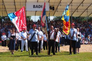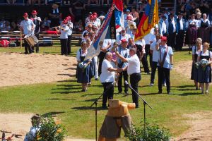 Bei wunderschönem Wetter sind rund 150 Schwinger zum Appell angetreten. Der Technische Leiter Schillig Willi informierte die Sportler über den Tagesablauf.