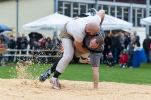Nach 1 Min. 23 Sek. bettete Roman Wandeler seinen Widersacher Doppmann mit einer herrlichen Kurz/Fussstich-Kombination ins Sägemehl und vervollständigte am Boden resolut zum Resultat.