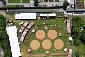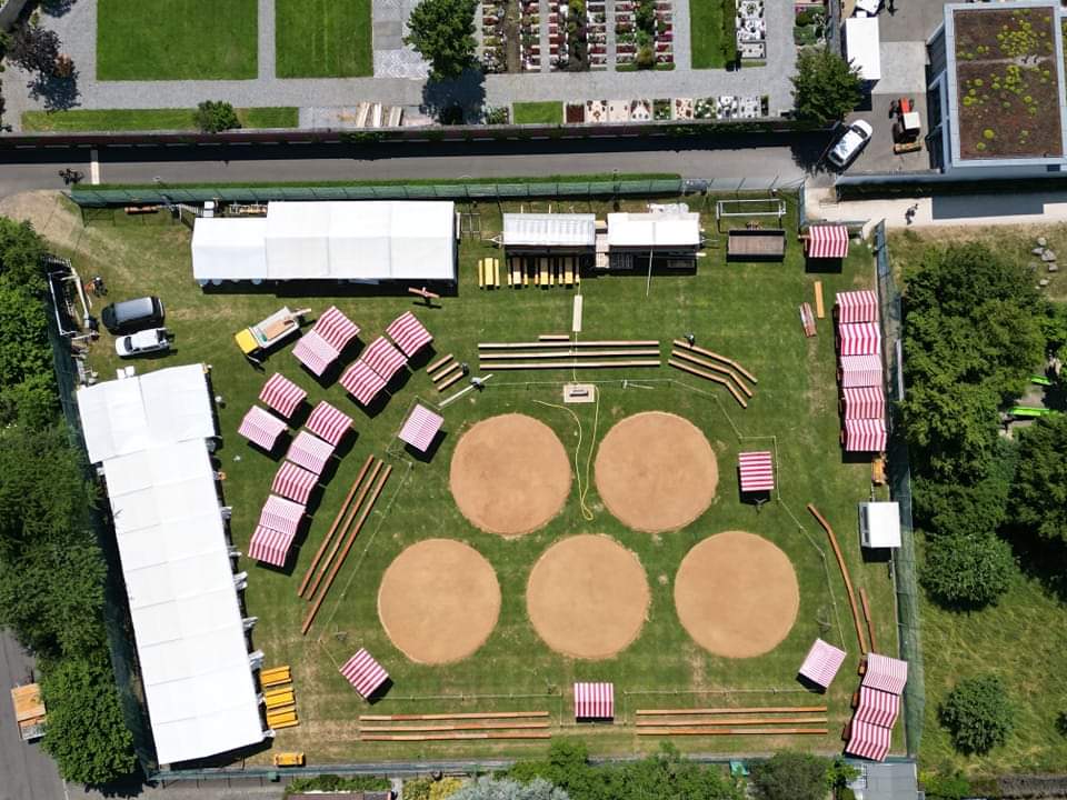 Beim Schulhaus Breite richtet der Schwingklub Muttenz unter der Führung vom OK-Präsidenten Dominik Straumann und dem Vize-Präsidenten Reto Schmid einen wunderbaren Festplatz vor der imposanten Kulisse des Wartenbergs ein.