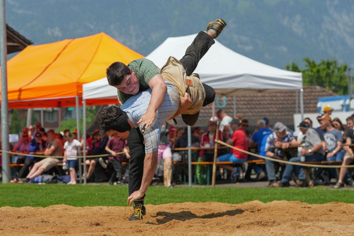 Ob- und Nidwaldner Kant. Nachwuchsschwingertag Kerns, 27.05.2023Schlussbericht Nombre de lutteurs208 Nombre de spectateurs500 retour à l‘aperçu Hurschler Stefan (o) - Kiser Adrian (u) Hurschler Stefan (o) - Rohrer Lukas (u) v.l.n.r Feiburghaus Levin, Achermann Flavian ,Burch Kilian, Küng Alain und Hurschler Stefan © René Burch