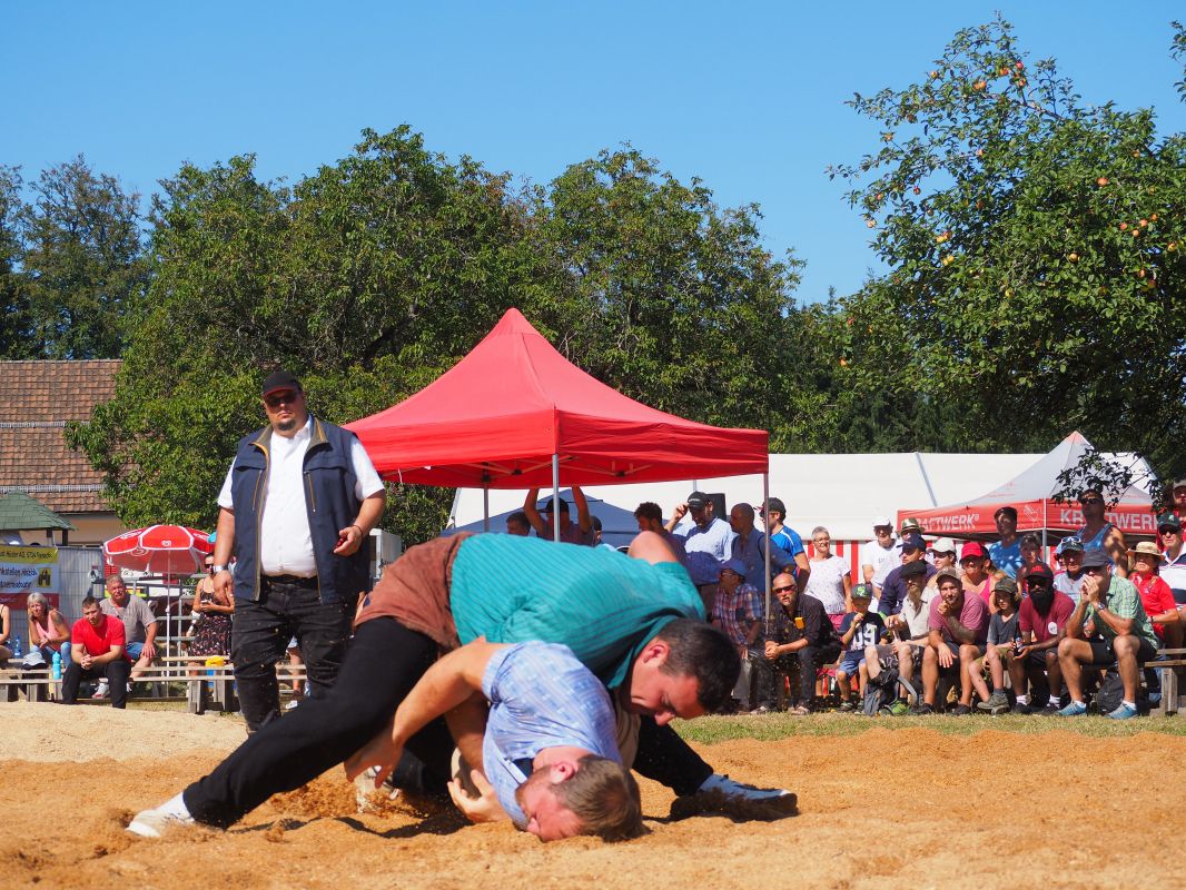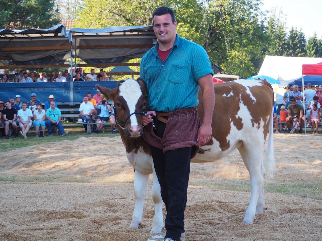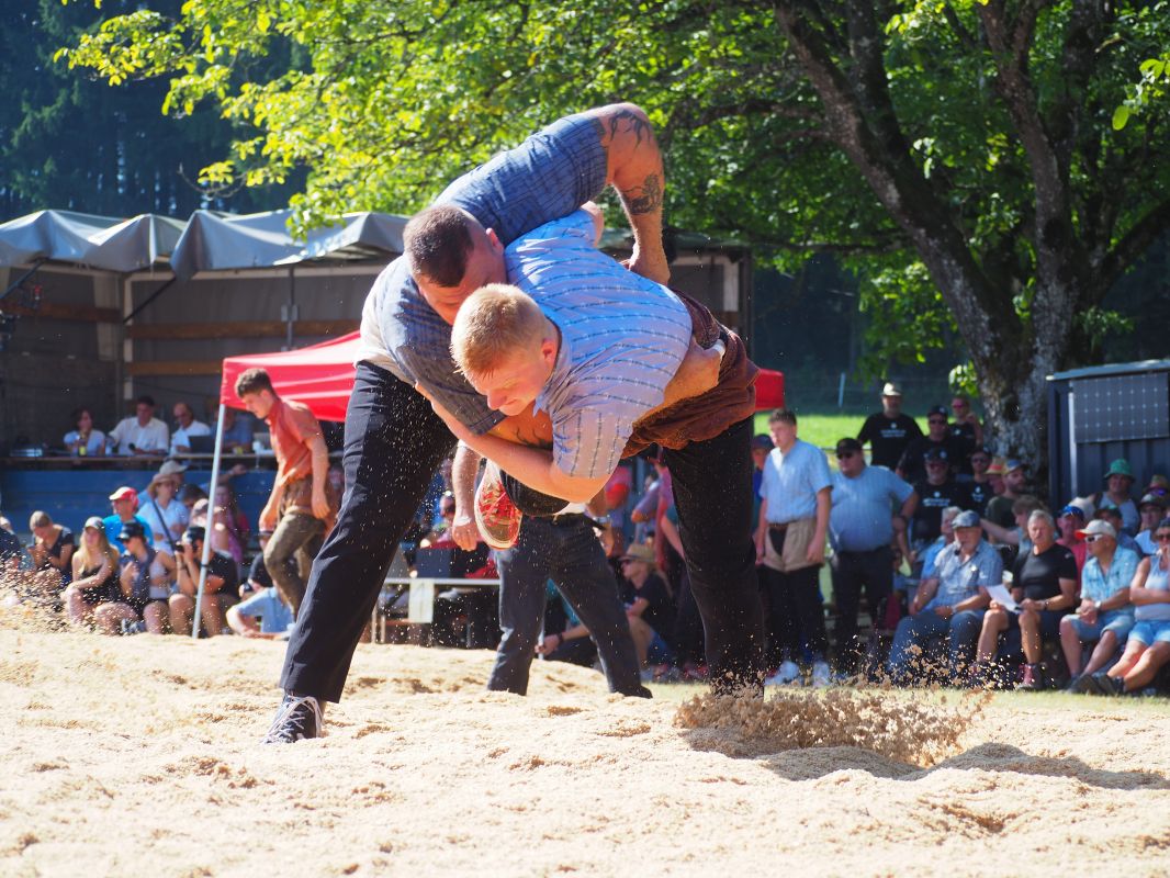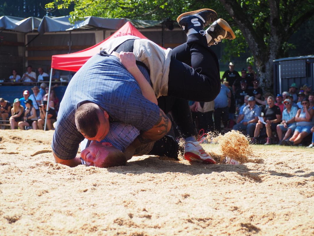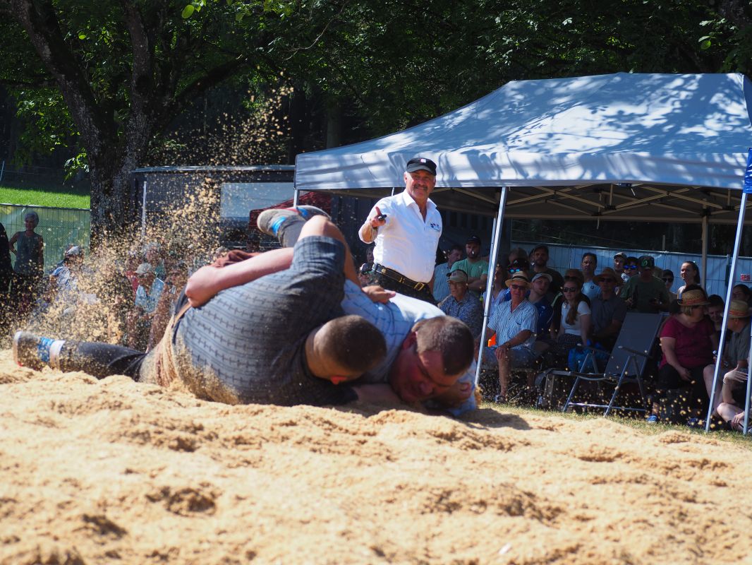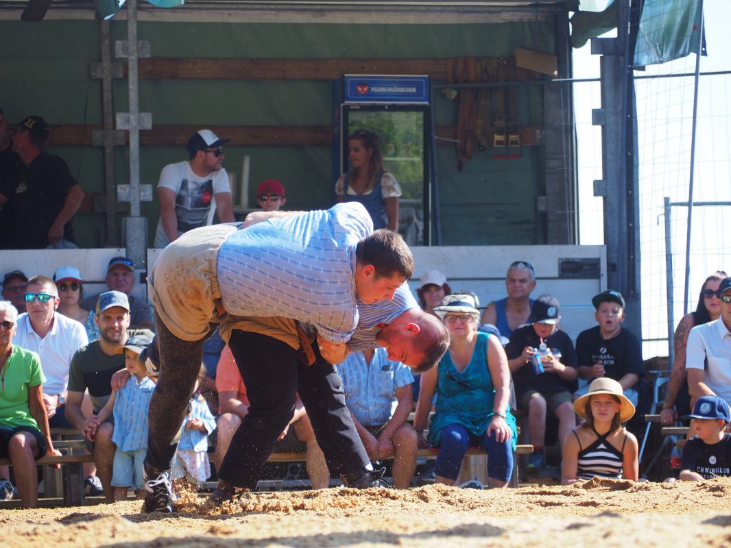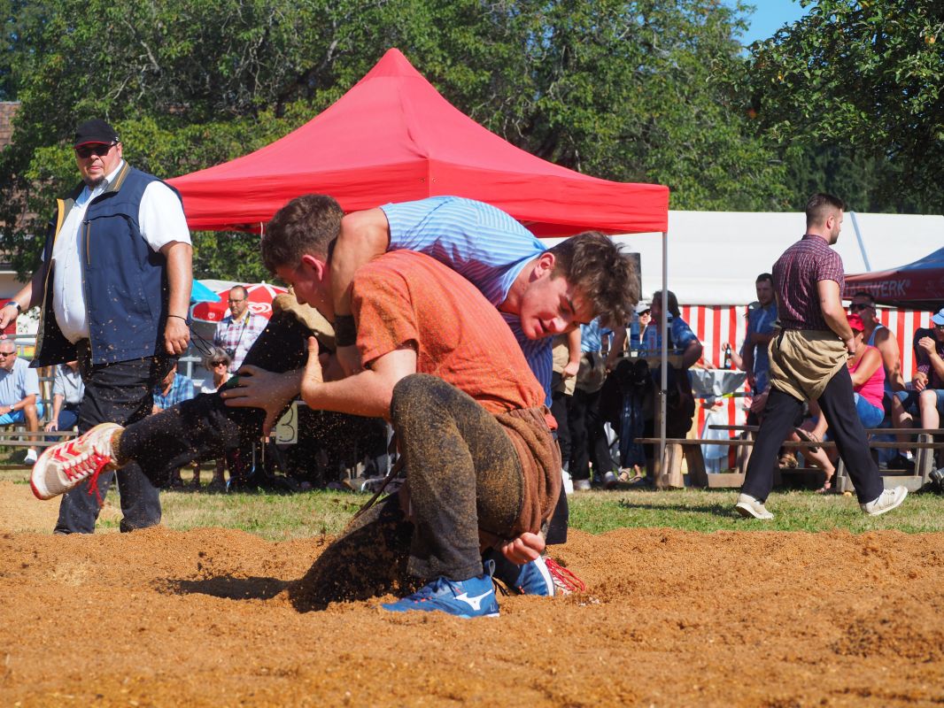 Nach intensiven 2:02 Minuten bezwingt Joel Strebel im Schlussgang Andreas Döbeli. Als Festsieger durfte er Rind "Ronja" in Empfang nehmen.