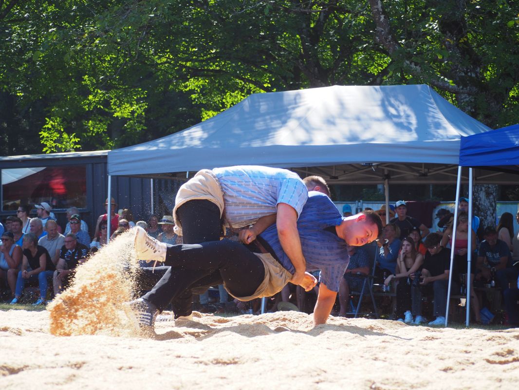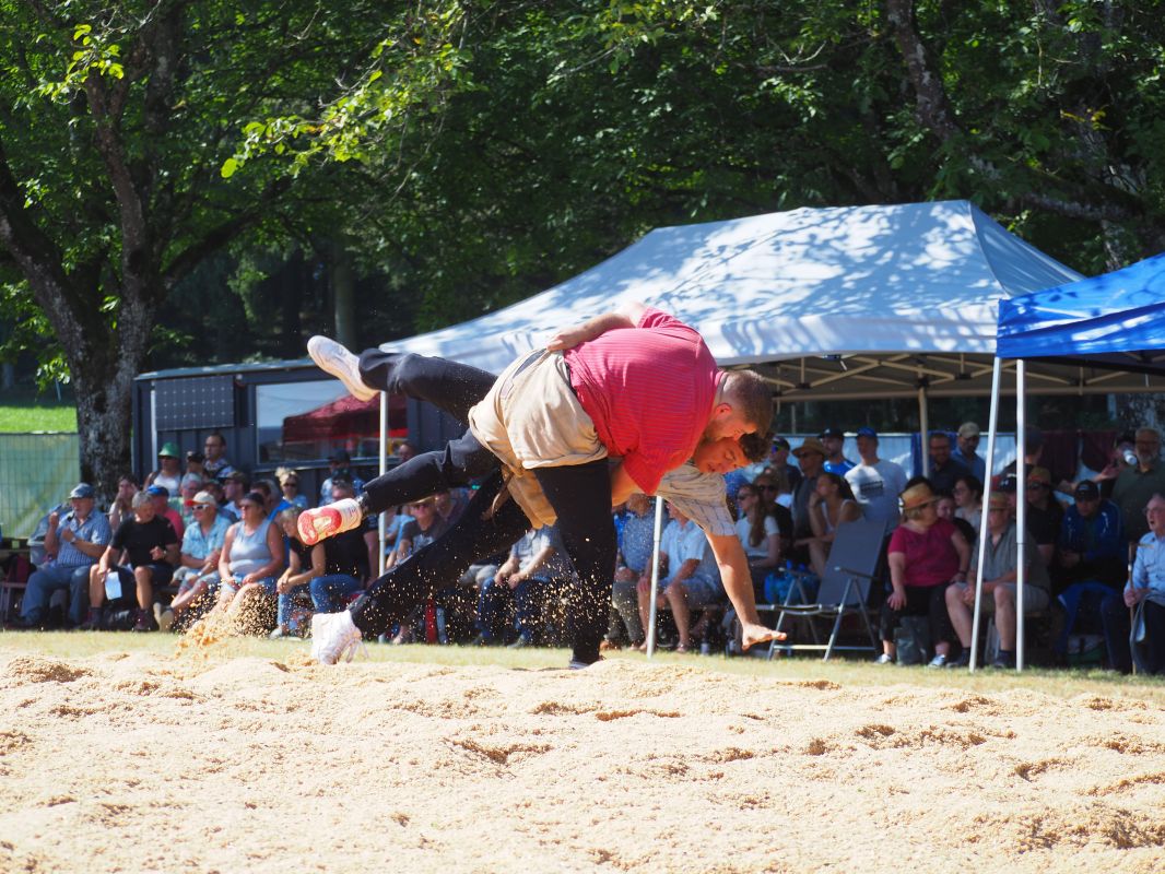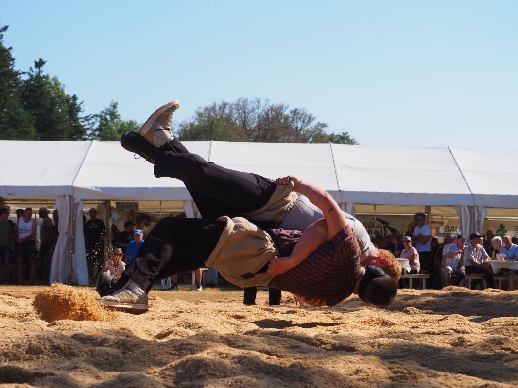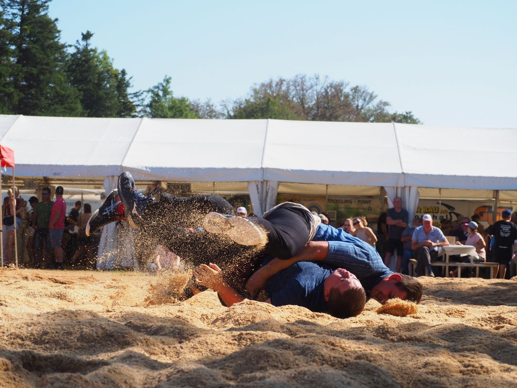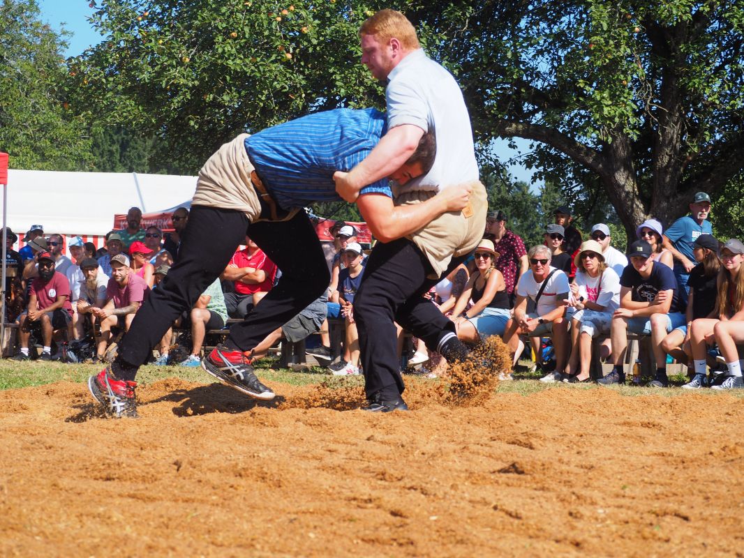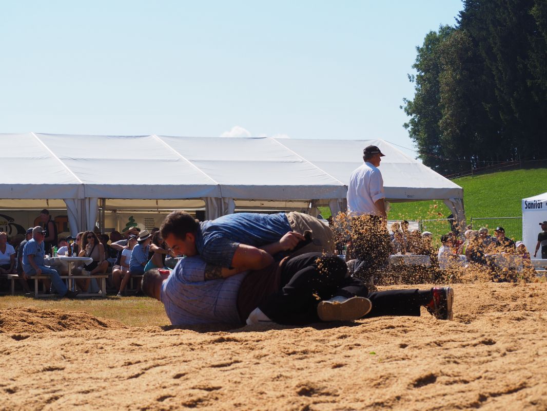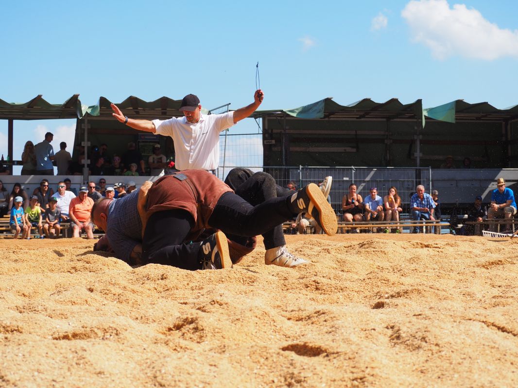 Nach intensiven 2:02 Minuten bezwingt Joel Strebel im Schlussgang Andreas Döbeli. Als Festsieger durfte er Rind "Ronja" in Empfang nehmen.