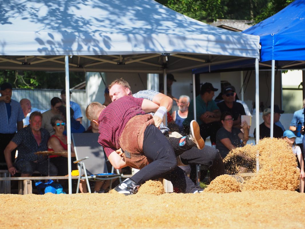 Es war ein spannender und toller Schwingtag. Die 3 Eidgenossen die antraten machten den Sieg auch unter sich aus. Obwohl Bättig Martin auch vorne mitmischte und der stärkste Gast des Tages war, wurde der Schlussgang ein reines Freiämter Duell. Döbeli Andreas konnte mit 48.50 Punkten in den Schlussgang einziehen. Ihm gegenüber stand sein Klubkollege Strbel Joel mit 48.25 Punkten.