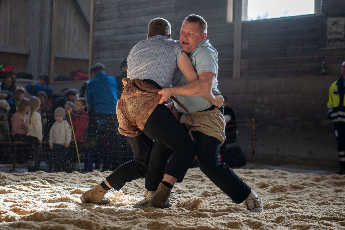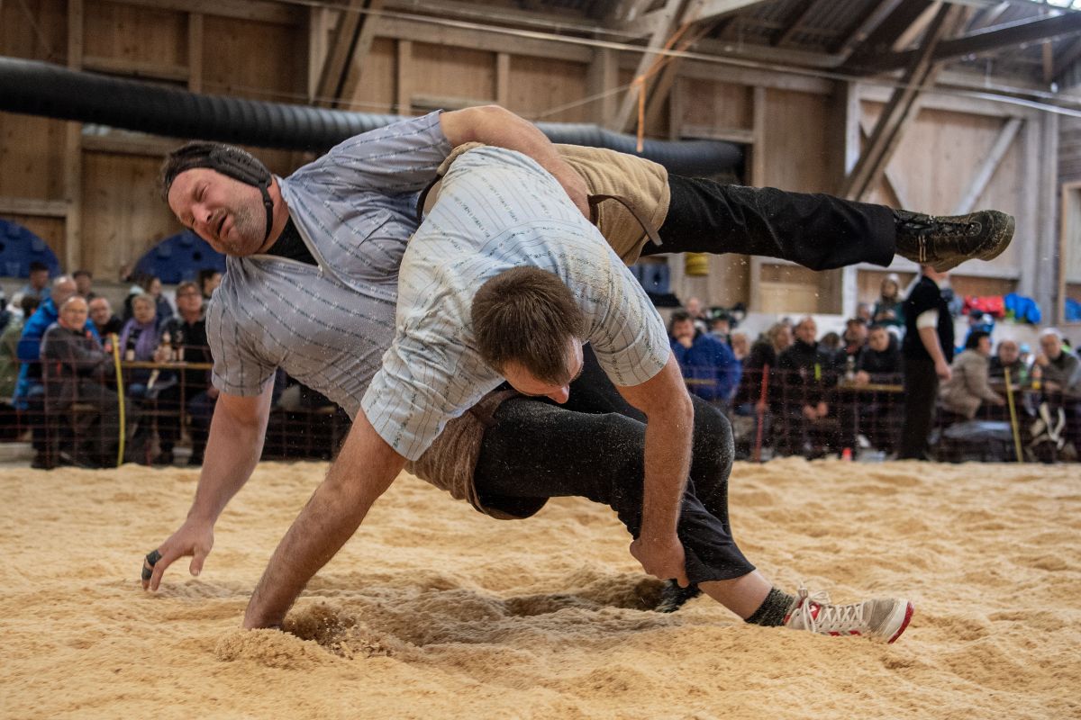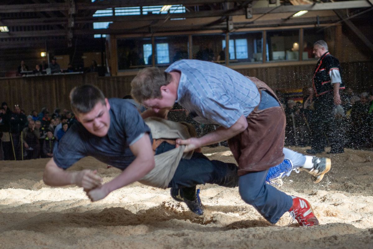 Heimenschwand, 12. März 2023, Schwingen, 23. Hallenschwinget Oberdiessbach 2023. Philipp Gehrig (L, Heimisbach) gegen Hanspeter Luginbühl (, Aeschiried) (Rolf Eicher)
