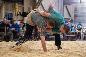 Heimenschwand, 12. März 2023, Schwingen, 23. Hallenschwinget Oberdiessbach 2023. Steve Duplan (H, Aigle) gegen Sandro Galli (V, Biglen) (Rolf Eicher)