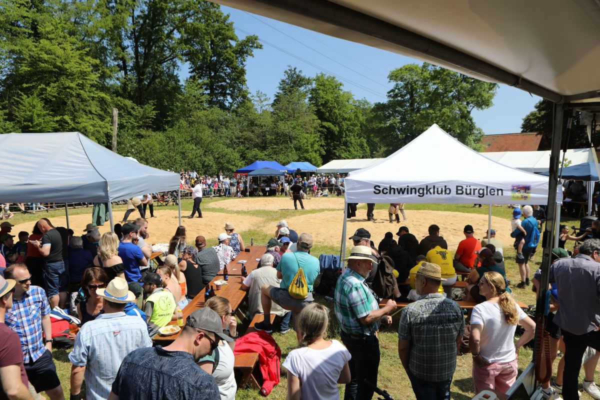 Prächtiges Pfingstwetter, eine kleine, aber feine Schwingarena und spannende Wettkämpfe sorgten für tolle Stimmung am Baldegg-Schwinget. Zum ersten Mal seit 2019 wurde wieder auf dem ursprünglichen Schwingplatz oben beim Restaurant Baldegg geschwungen. Rund 1100 schwingbegeisterte Zuschauer fanden den Weg auf den Badener Hausberg und genossen das Fest hautnah an den Schwingplätzen, verpflegten sich in der gut organisierten Festwirtschaft und genossen das gesellige Zusammensein in dieser tollen Athmosphäre.