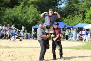 Den Schlussgang der Aktiven bestritten Nick Alpiger (SK Lenzburg) und Dominik Schwegler (SK Baden-Brugg). Nick Alpiger konnte mit Fussstich und Nachdrücken am Boden nach 7:38 Minuten gewinnen und durfte den Lebendpreis Helga in Empfang nehmen.