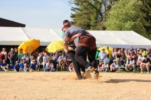 Nach dem Sieg von Joel Strebel gegen Patrick Räbmatter im ersten Gang treffen die beiden im Schlussgang wieder aufeinander. Nach rund einer Minute gewinnt Joel auch dieses Duell mit Kurz. Joel Strebel gewinnt bereits zum vierten Mal das Guggibad-Schwinget.