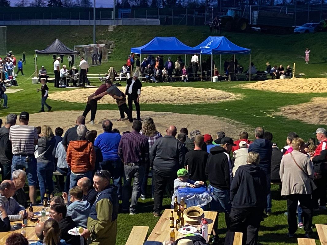 Bei strahlen schönem Sonnenschwein stiegen 69 Aktivschwinger motiviert vor 1238 Zusachauern ins Sägemehl. . Das Fest war geprägt von den starken Berner Gastschwingern aus Schwarzenburg und Siehen. Schnell einmal war an der Spitze der Rangliste fast nur noch Berner vertreten und die einheimischen Schwinger hatten ein wenig das Nachsehen. Für den Schlussgang konnten sich Renfer Lukas uns Gasser Dominik qualifizieren. Leider verletzte sich Renfer Lukas bei einem Angriffversuch und konnte den Gang nicht fortsetzen. So musste das Einteilungsgericht einen Ersatz suchen und fanden ihn in Schwander Severin. Dieser war zusammen mit Ramseier Fritz nach 6 Gängen an der Spitze. Gasser und Schwander neutralisierten sich im 10 Minütigen Schlussgang gegenseitig und der Gang endete Gestellt. Somit beendete Schwander Severin im Rang 1a und Ramseier Fritz im Rang 1b das Fest als gemeinsame Sieger. Der Klubpreis für den besten Schwingklub ging knapp an den Schwingklub Siehen vor Schwarzsenburg und dem Schwingklub Sense.