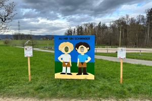 • Auf dem Prattler Blueschtrundwanderwege (Chirsiweg Erli) wandert man am Festgelände Pratteln 2024 vorbei.