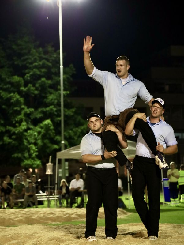 Der einzige Eidgenosse im Teilnehmerfeld von 100 Schwingern aus der Innerschweiz war der Favorit auf den Festsieg. Diesen Status zementierte er von Anfang an, indem er den Sieger des diesjährigen Urner Kantonalschwingfestes, Bissig Lukas, bereits nach wenigen Sekunden ins Sägemehl bettete.