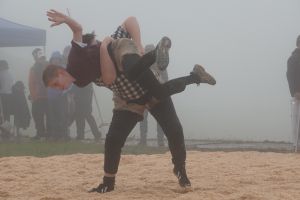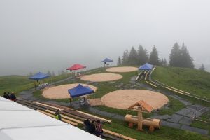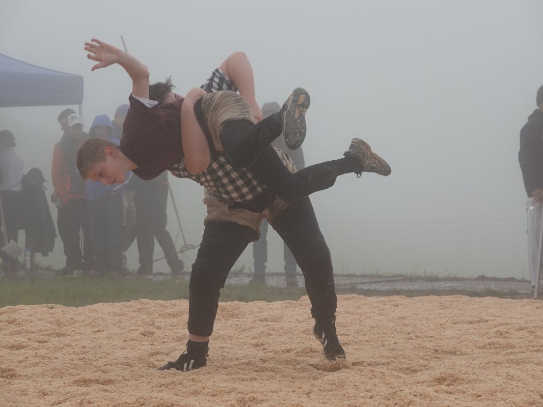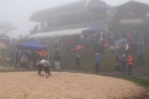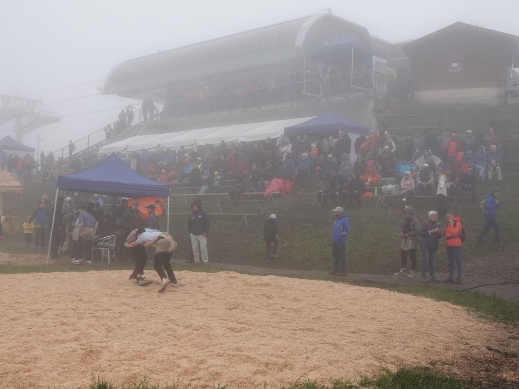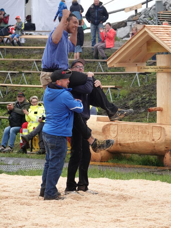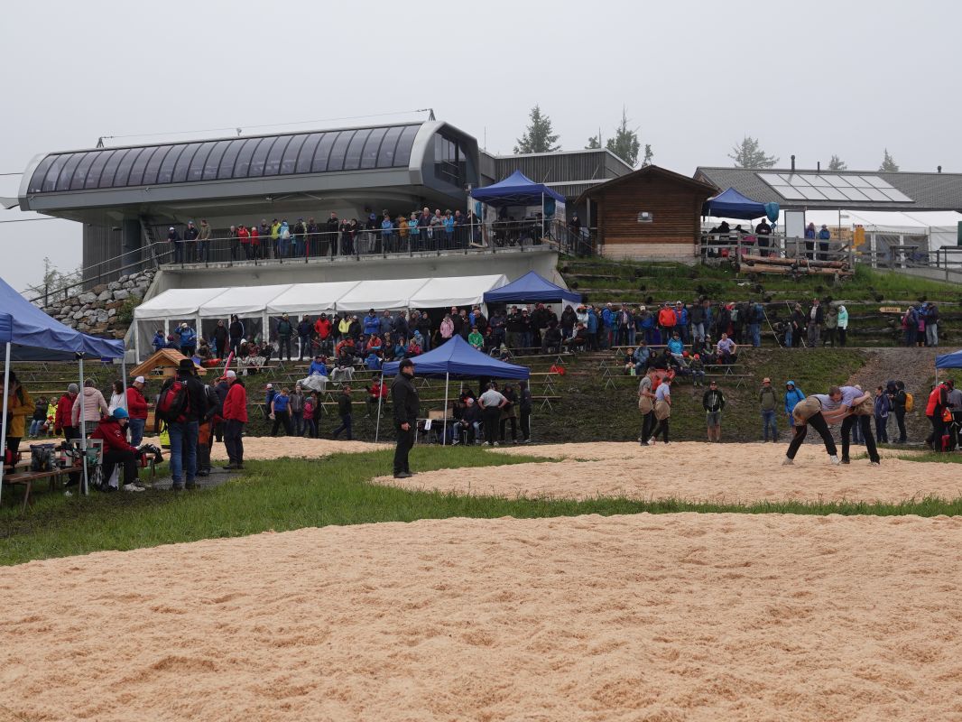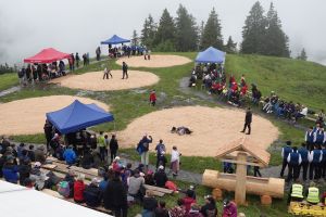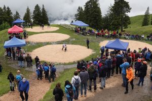 Mit viel Einsatz richtete der organisierende Schwingerverband am Mythen unter der Leitung von OKP Mike Bürgler das Kantonale der Jungen aus. Pünktlich auf den Festtag hin stellte der Regen ab. Am Morgen gewährte jedoch dichter Nebel nur gerade die Sicht auf den Festplatz, am Nachmittag lockerte sich zaghaft das dicke Grau, so dass die Besucher doch noch etwas die Aussicht geniessen konnten. Das vorwiegend nasse Wetter der letzten Tage liess den Schwingplatz auf dem 1591 Meter hoch gelegenen Joseph Platz neben der Rotenflue Bergstation ziemlich leiden. Doch die Organisatoren nahmen grosse Mühe auf sich, um die Bedingungen für alle erträglicher zu machen. Der Schwyzer kantonale Nachwuchsleiter Armin auf der Maur durfte beim morgendlichen Apell 182 Wettkämpfer auf dem Schwyzer Hausberg begrüssen.