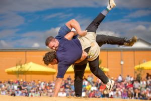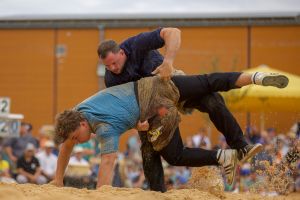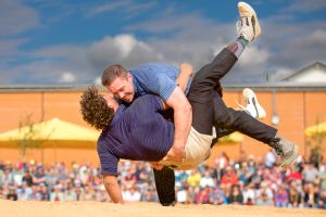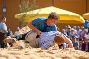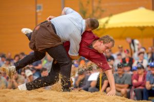 Emmenés par Kramer Lario, les locaux ont tenté de tenir tête aux puissants invités. Collaud Romain a d'abord réussi à battre Schwander Severin, puis Staudenmann Fabian a réussi à battre Kramer Lario. Jusqu'à midi, plusieurs lutteurs ont réussi à remporter 3 passes. Heureusement, les Suisses du Sud-Ouest Collaud Romain et Murer Andy, qui formaient avec Staudenmann Fabian et Reichmuth Roland la tête du classement.